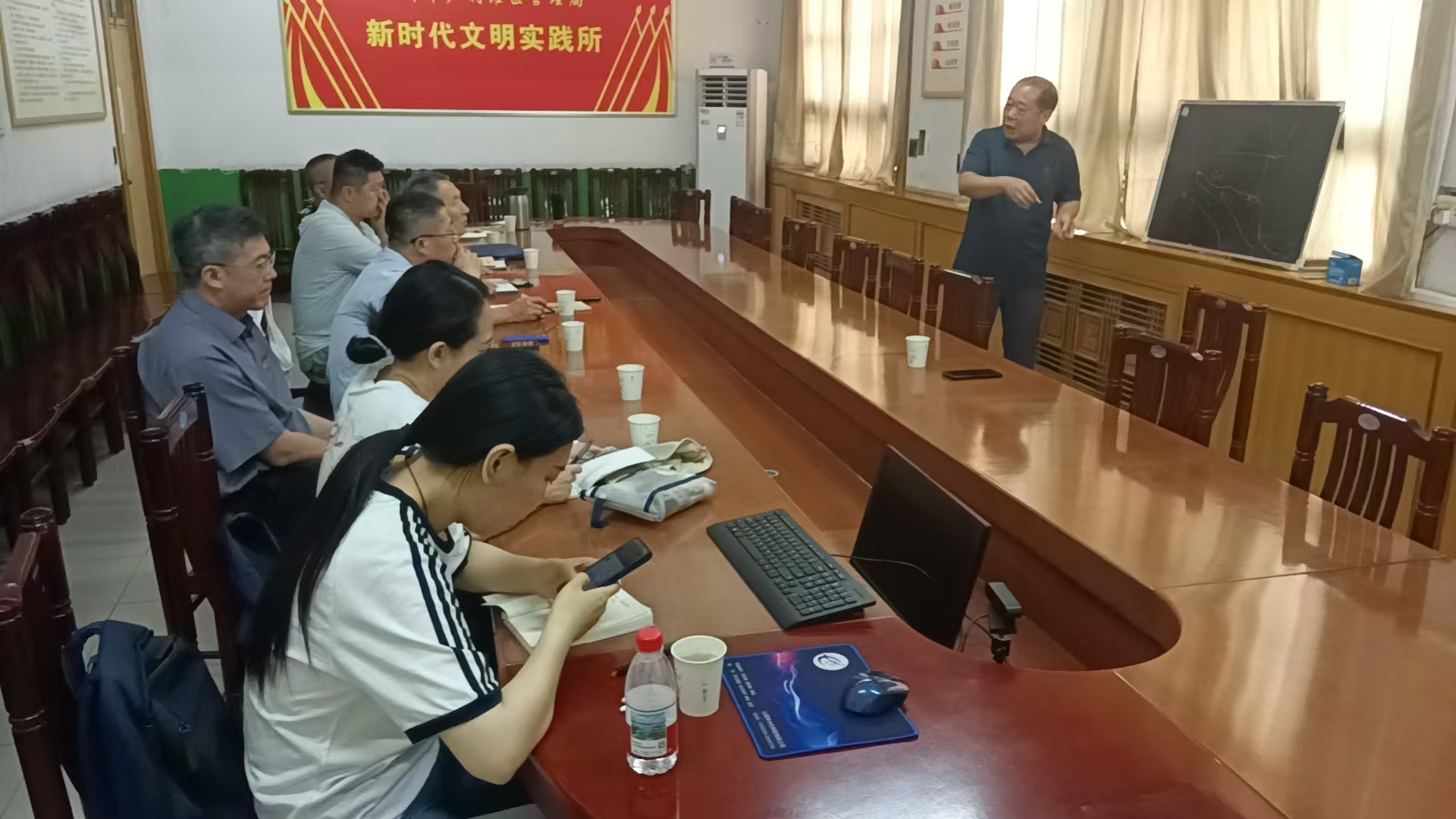 沁阳市文物局田中华向调查评估组专家讲解沁河广利渠发展演变过程